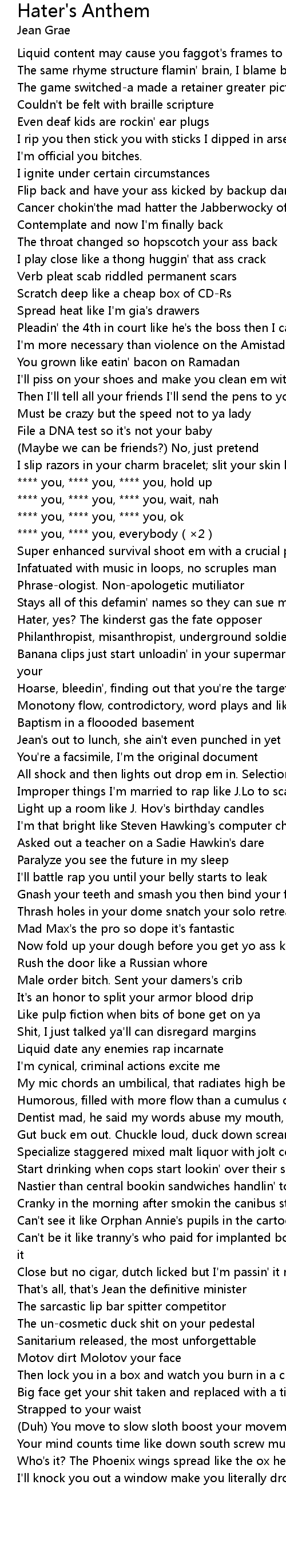 | [03:26] | Gut buck em out. Chuckle loud, duck down screamin' **** the crowd |