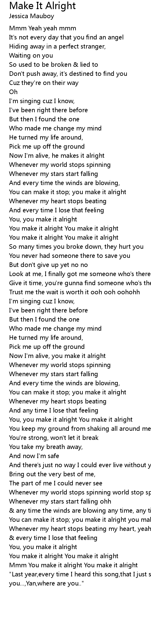 You can make it stop; you make it alright you make it alright |
