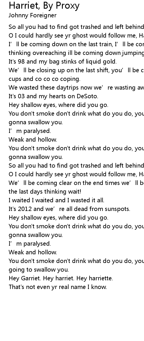 | Song | Harriet, By Proxy |