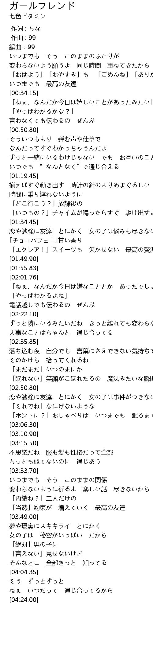 | [03:43.60] | 「当然」約束が 増えていく 最高の友達 |