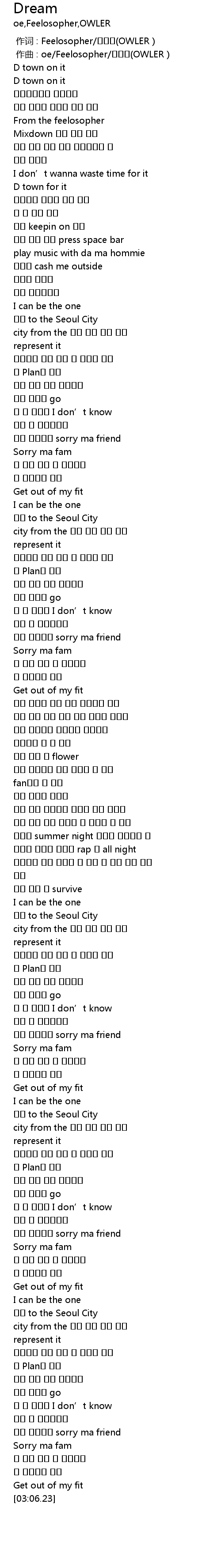 | [00:01.000] | 作曲 : oe/Feelosopher/아울러(OWLER ) |