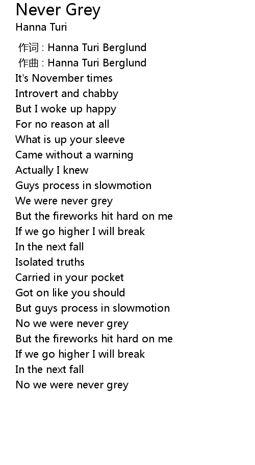 | [01:56.52] | No we were never grey |