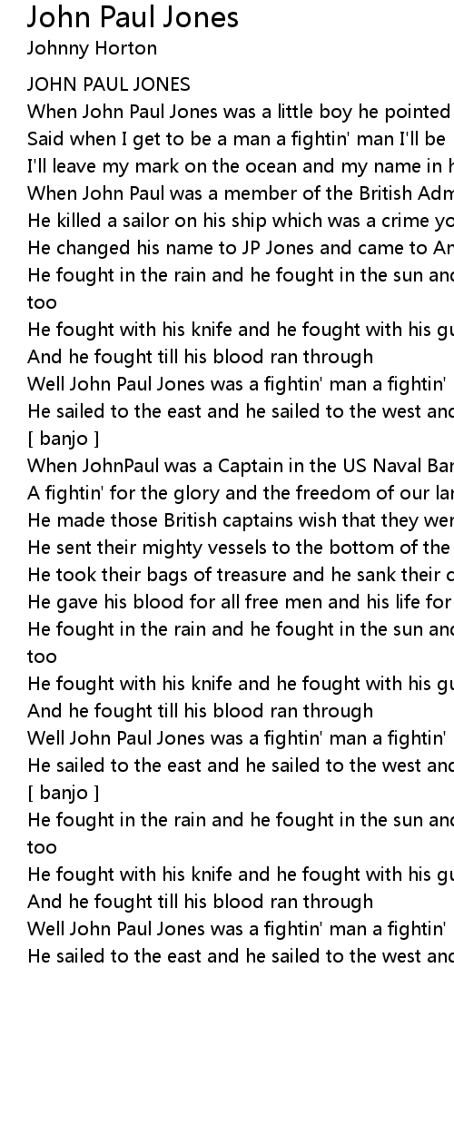 Well John Paul Jones was a fightin' man a fightin' man was he |