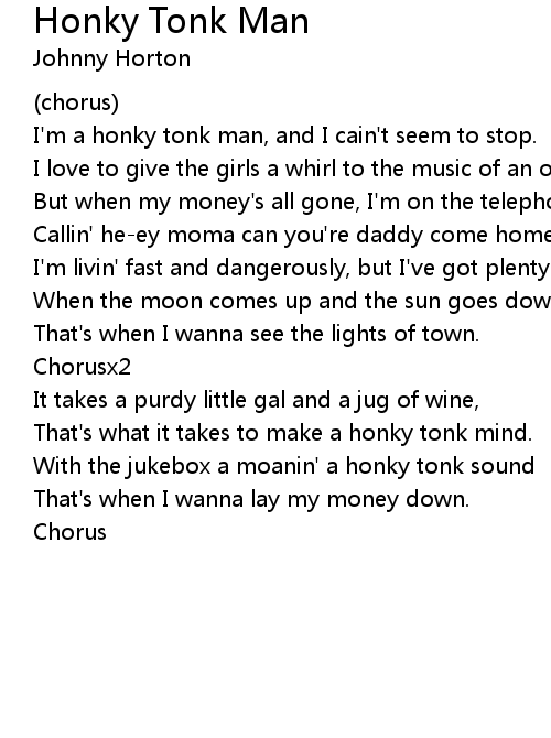 I'm a honky tonk man, and I cain't seem to stop. |