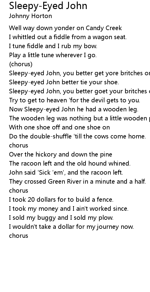 Now Sleepy-eyed John he had a wooden leg. |