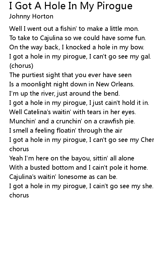 I got a hole in my pirogue, I just cain't hold it in. |