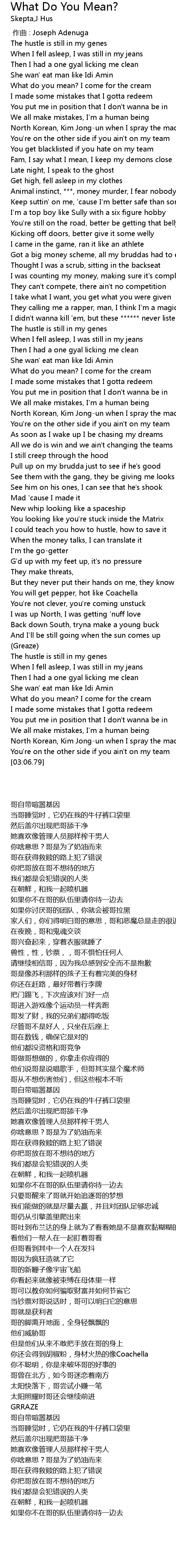 | [03:00.06] | North Korean, Kim Jong-un when I spray the machine |