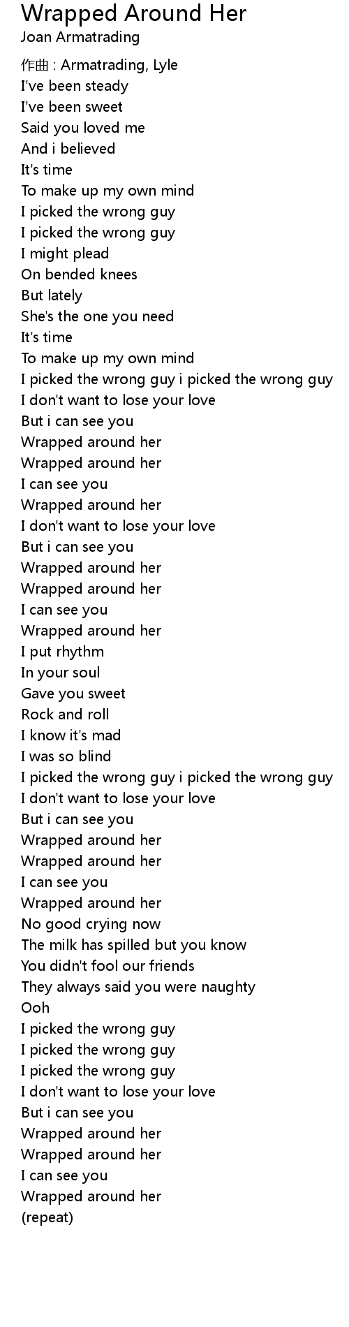 | Song | Wrapped Around Her |