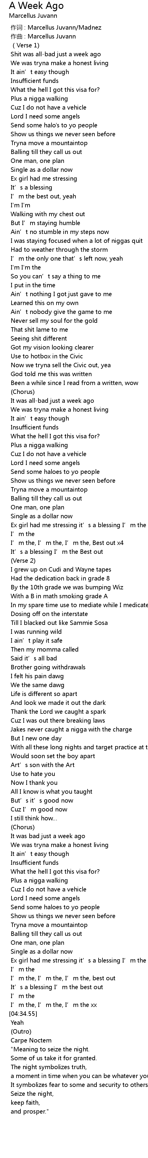 | [00:12.04] | Shit was allbad just a week ago |