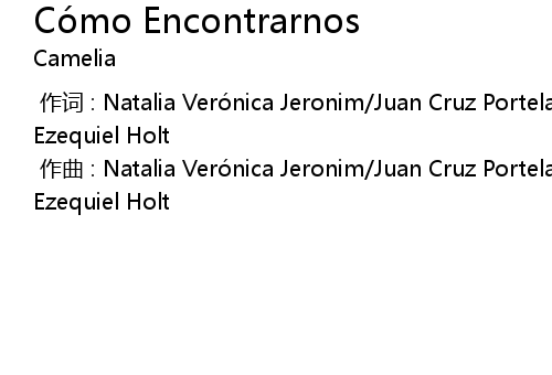 | [00:00.000] | 作曲 : Natalia Verónica Jeronim/Juan Cruz Portela/Gastón Ezequiel Holt |
