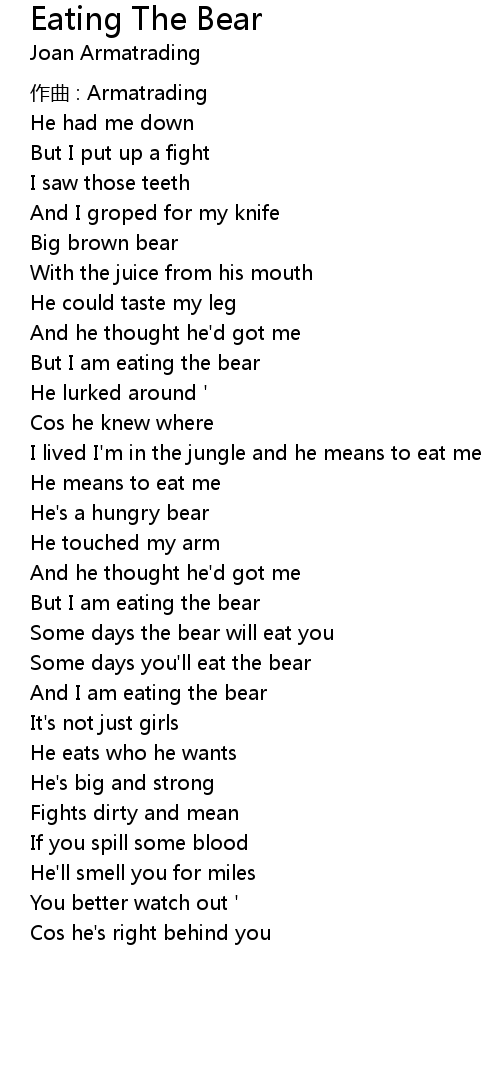 | Song | Eating The Bear |