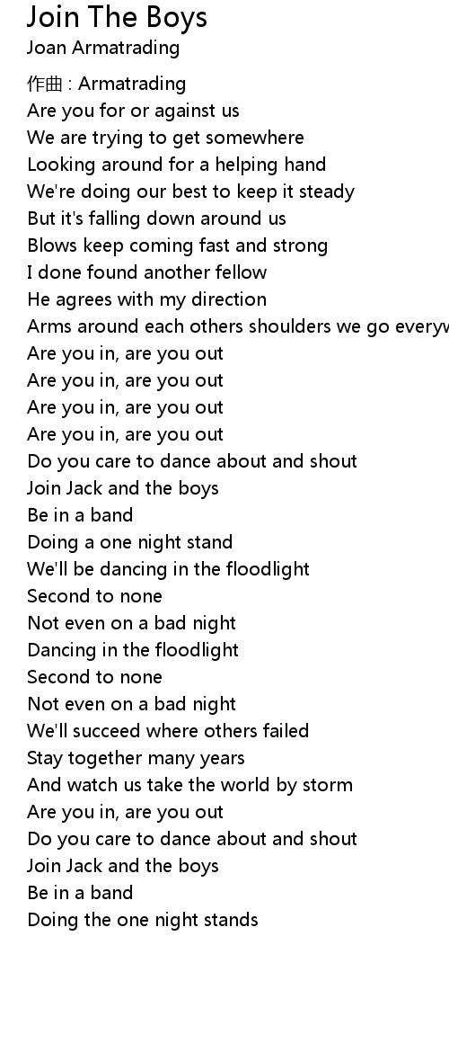 | Song | Join The Boys |