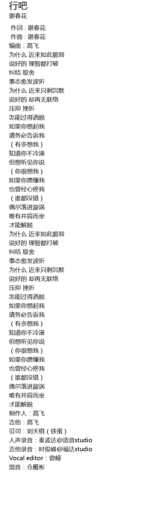 | [00:01.000] | zuò qǔ : xiè chūn huā |