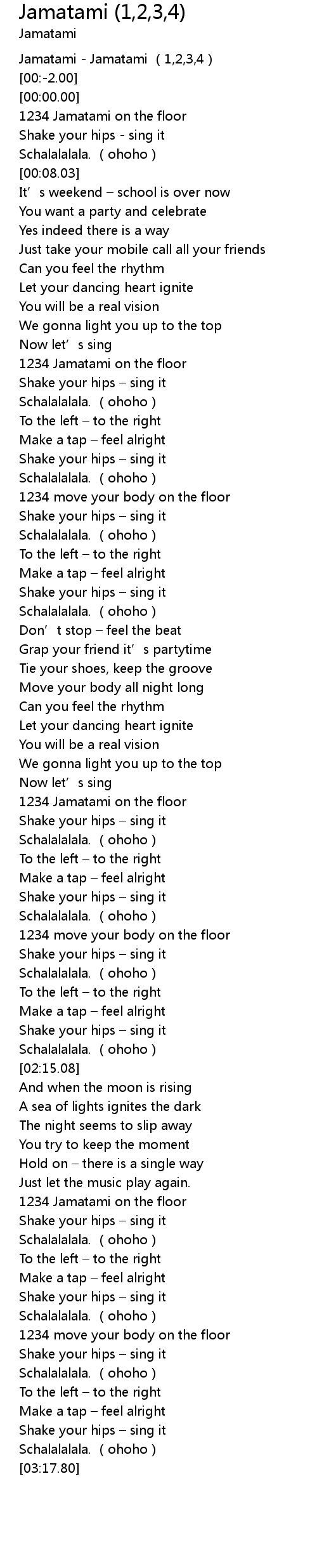 | [02:46.87] | 1234 Jamatami on the floor |