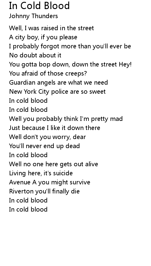 In Cold Blood Lyrics