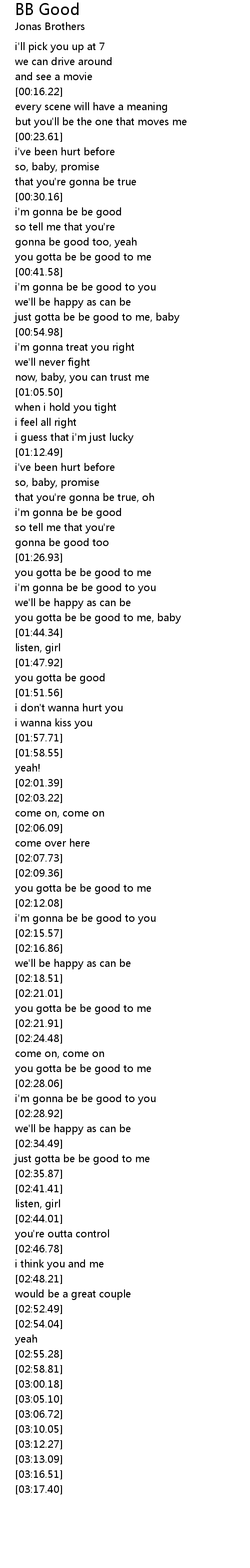 you gotta be be good to me, baby |