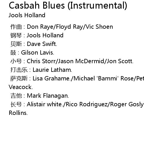| [00:00.000] | 萨克斯 : Lisa Grahame./Michael 'Bammi' Rose/Pete Long./Phil Veacock. |