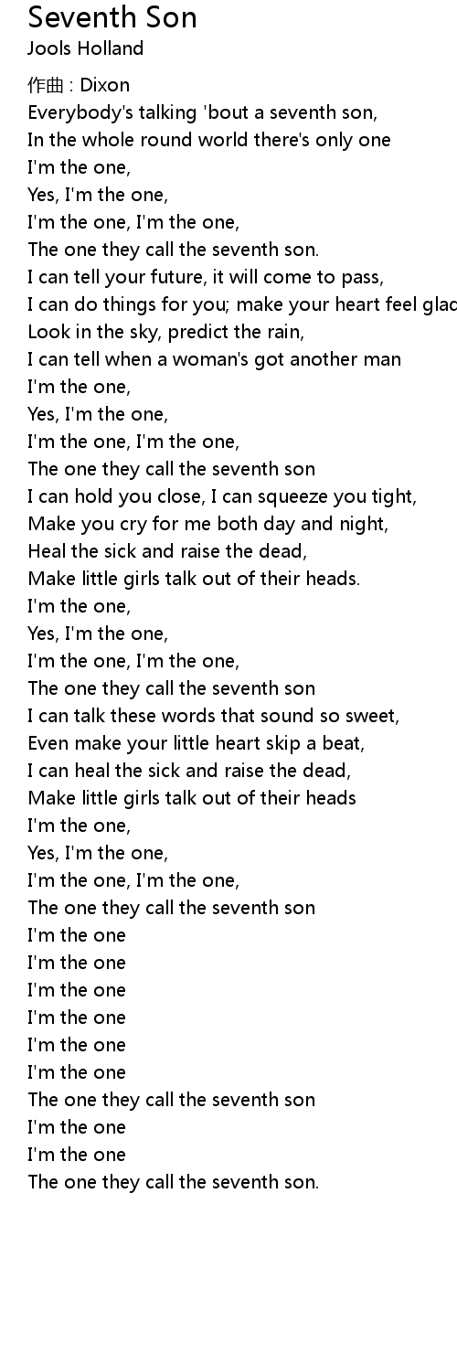 | Everybody's talking 'bout a seventh son, | |