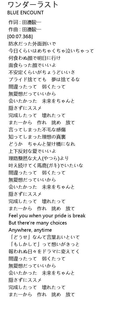 | [01:16.996] | 言ってしまった不毛な感傷 |