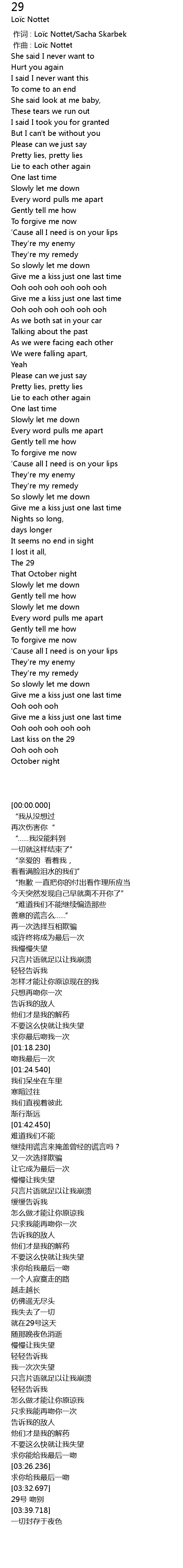 | [00:00.000] | zuo ci : Lo c Nottet Sacha Skarbek |