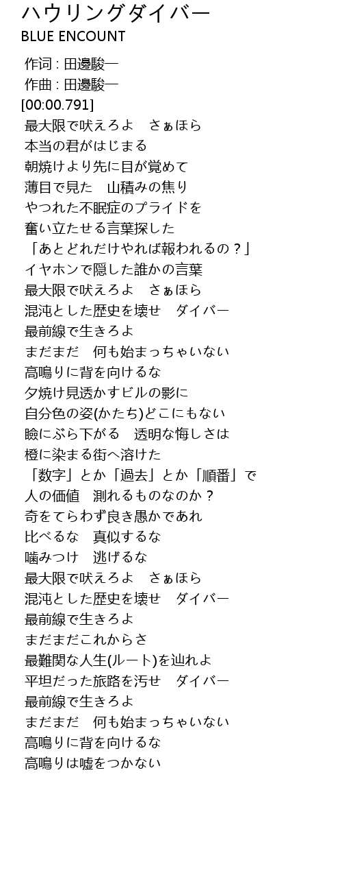 | [00:58.333] | 混沌とした歴史を壊せ ダイバー |