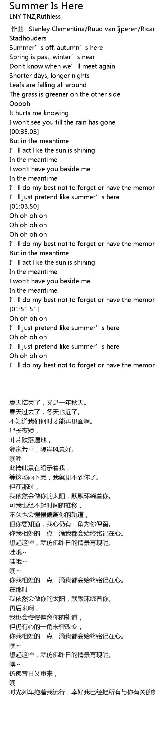 | [01:58.50] | I' ll just pretend like summer' s here |