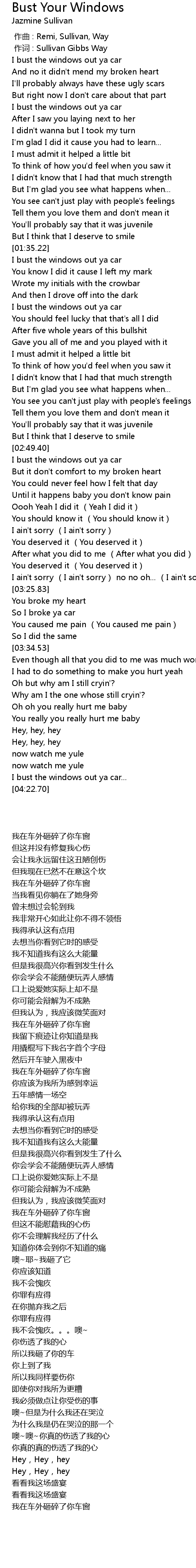 | [00:38.52] | I bust the windows out ya car |