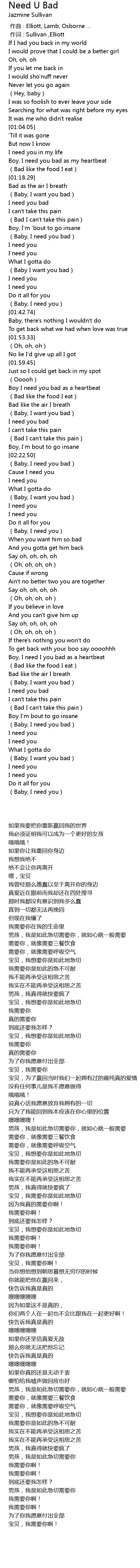 | [02:17.00] | I need you bad |