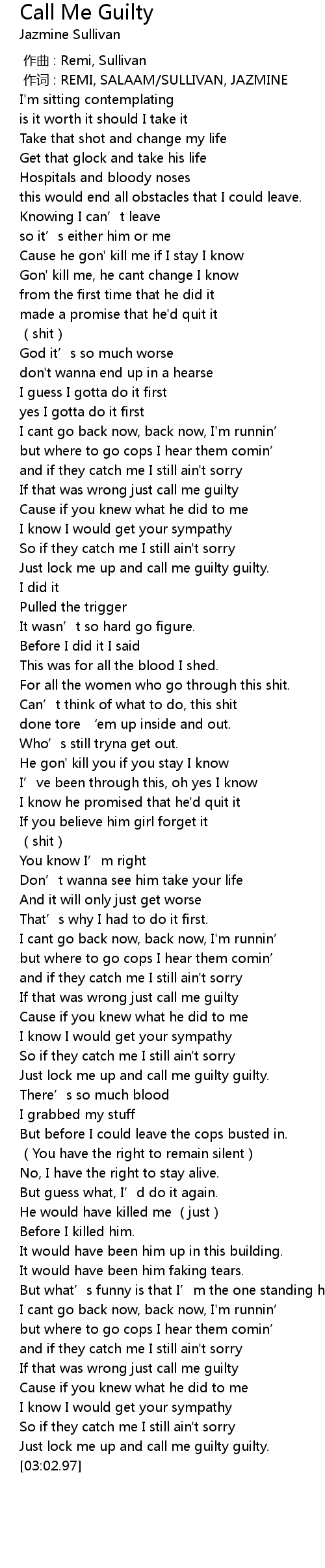 | [02:58.31] | Just lock me up and call me guilty guilty. |