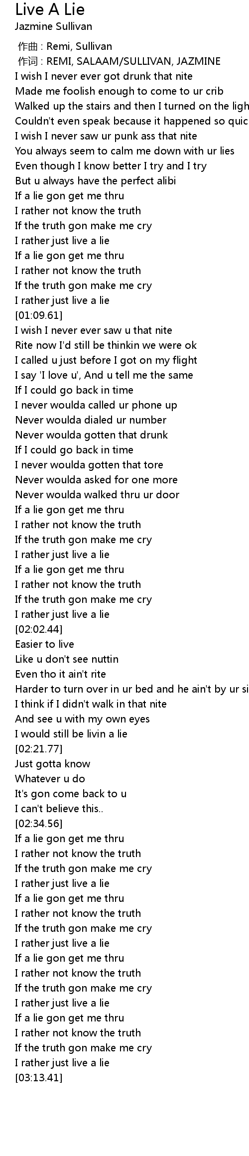 | [02:53.32] | I rather just live a lie |