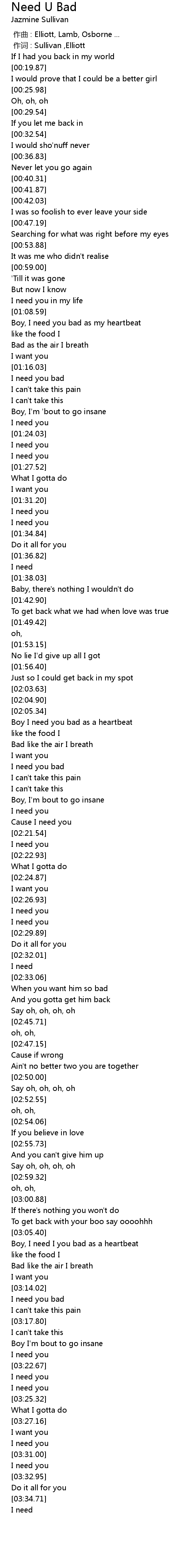 | [01:17.40] | I need you bad |