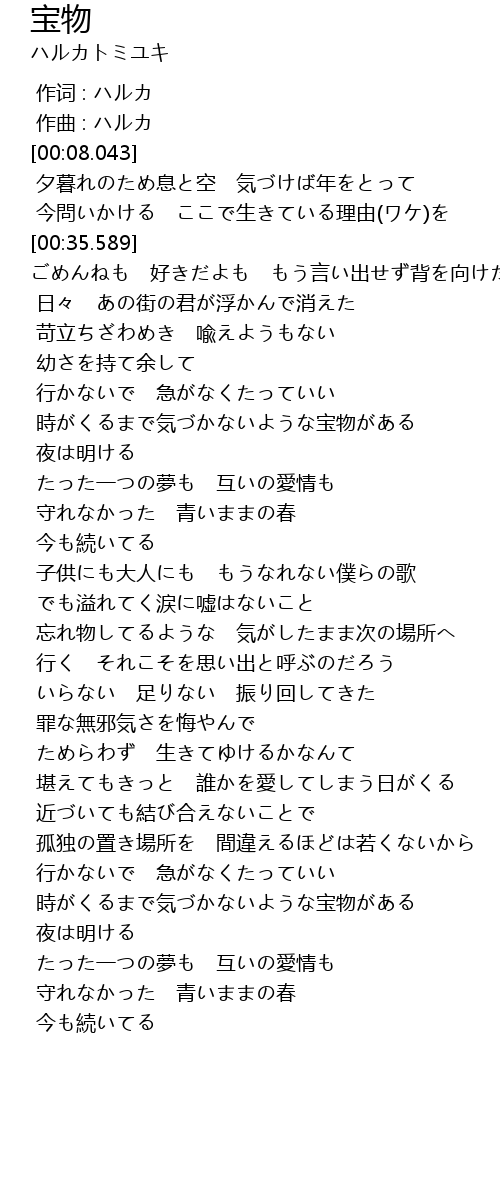 | [00:00.000] | 作词 : ハルカ |