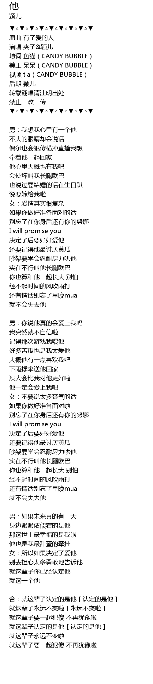 | 填词 鱼猫(CANDY BUBBLE) | |