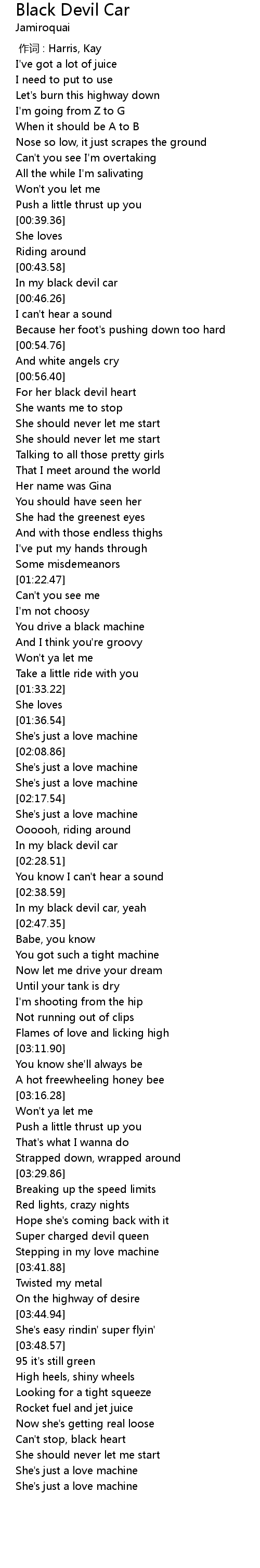 | [02:40.15] | In my black devil car, yeah |