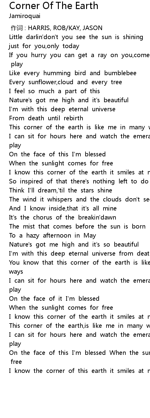 | [03:58.69] | This corner of the earth,is like me in many ways |