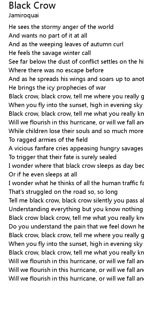 Black crow, black crow, tell me where you really go |