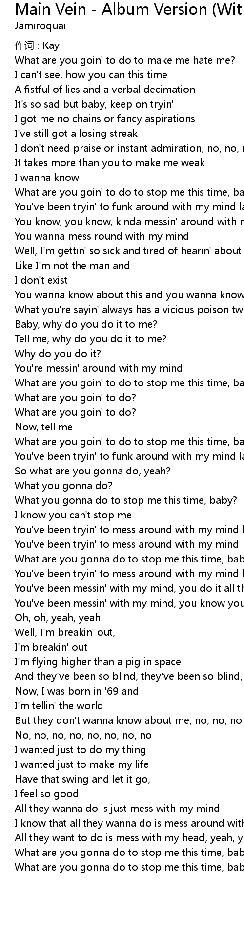 | Song | Main Vein - Album Version (Without Sample) |