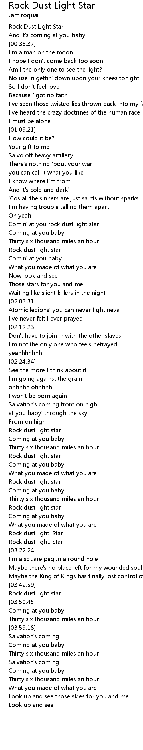 Comin' at you rock dust light star |