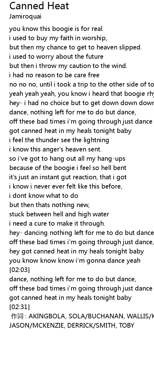 | [01:42] | hey got canned heat in my heals tonight baby |