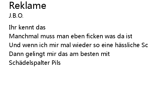 | Und wenn ich mir mal wieder so eine h ssliche Schabracke sch n saufen muss | |