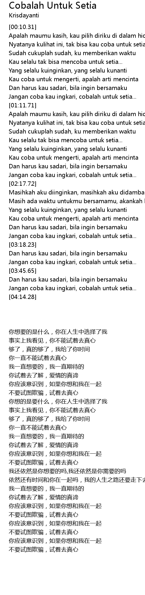Jangan coba kau ingkari, cobalah untuk setia... |