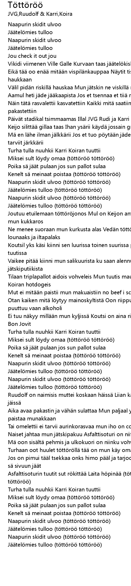 | [00:58.28] | Miksei sult löydy omaa (töttöröö töttöröö) |