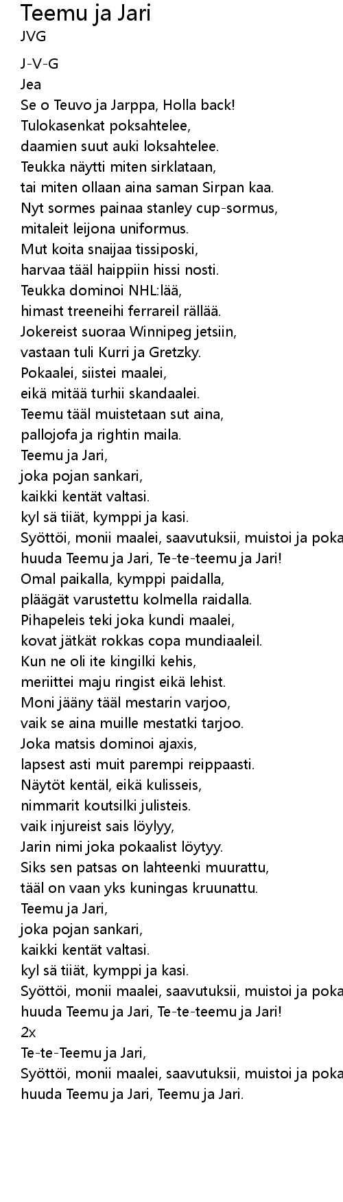 | huuda Teemu ja Jari, Te-te-teemu ja Jari! | |
