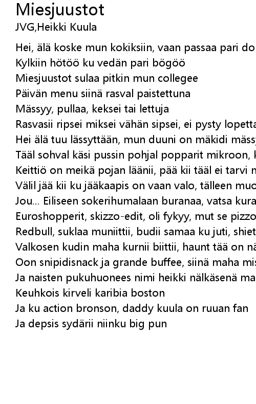 | Miesjuustot sulaa pitkin mun collegee | |