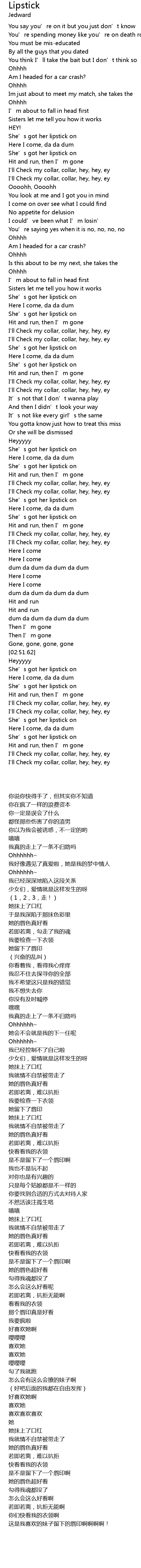 | [00:38.81] | She’s got her lipstick on |