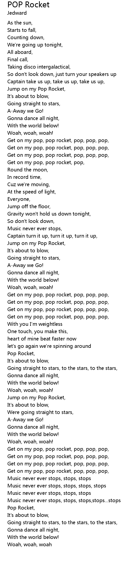 | [00:39.45] | Get on my pop, pop rocket, pop, pop, pop, |