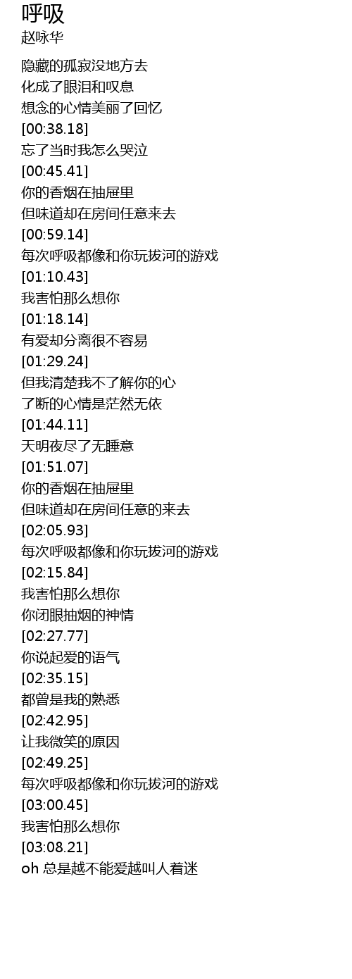 | [02:51.26] | 每次呼吸都像和你玩拔河的游戏 |