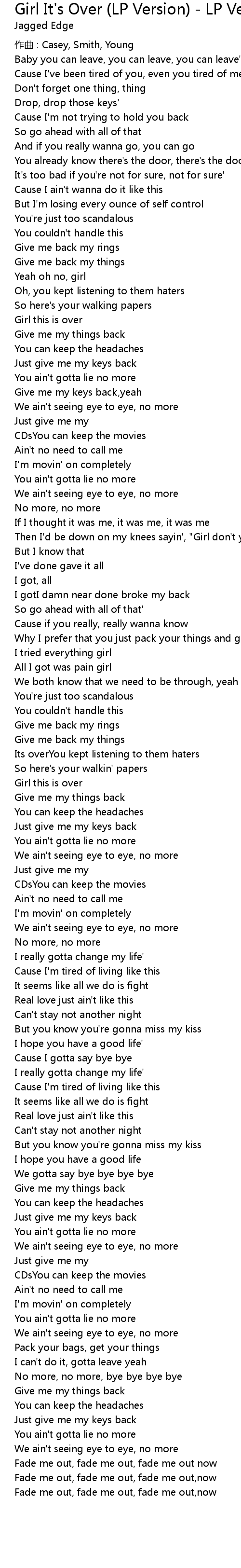 | Song | Girl It's Over (LP Version) - LP Version |