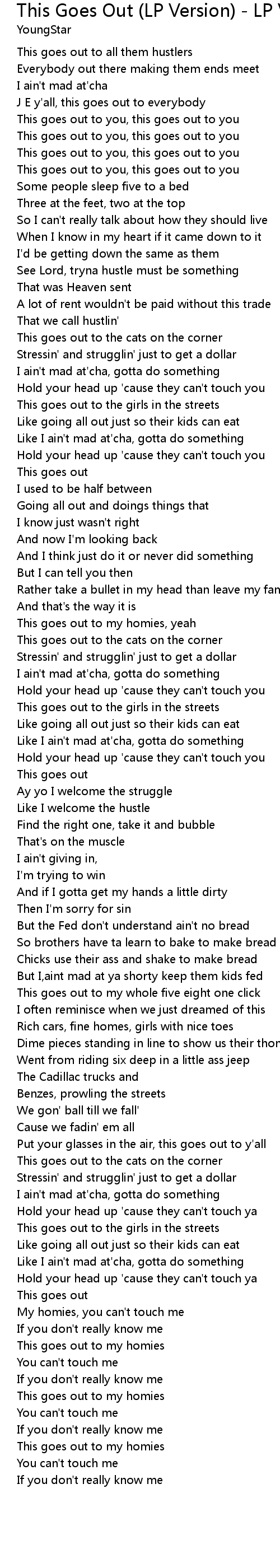 This goes out to you, this goes out to you |