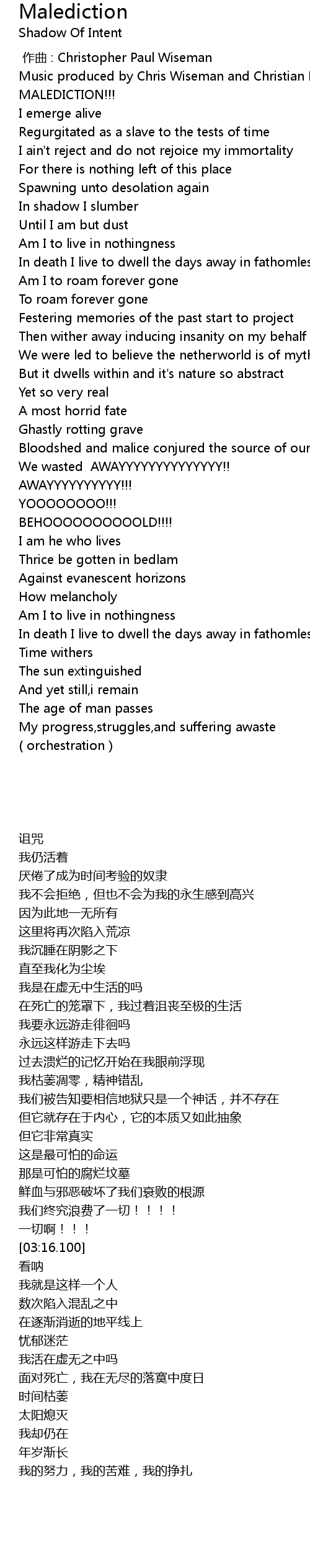 | [03:54.450] | In death I live to dwell the days away in fathomless dismay |